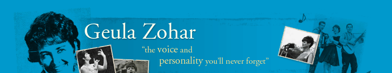 This website explores the life, career and family of Geula Zohar Pedhazur. We invite you to explore the gallery of pictures from Geula's life, samplings of the music from her career as an Israeli folk-song singer, and the story of her history as an entertainer.